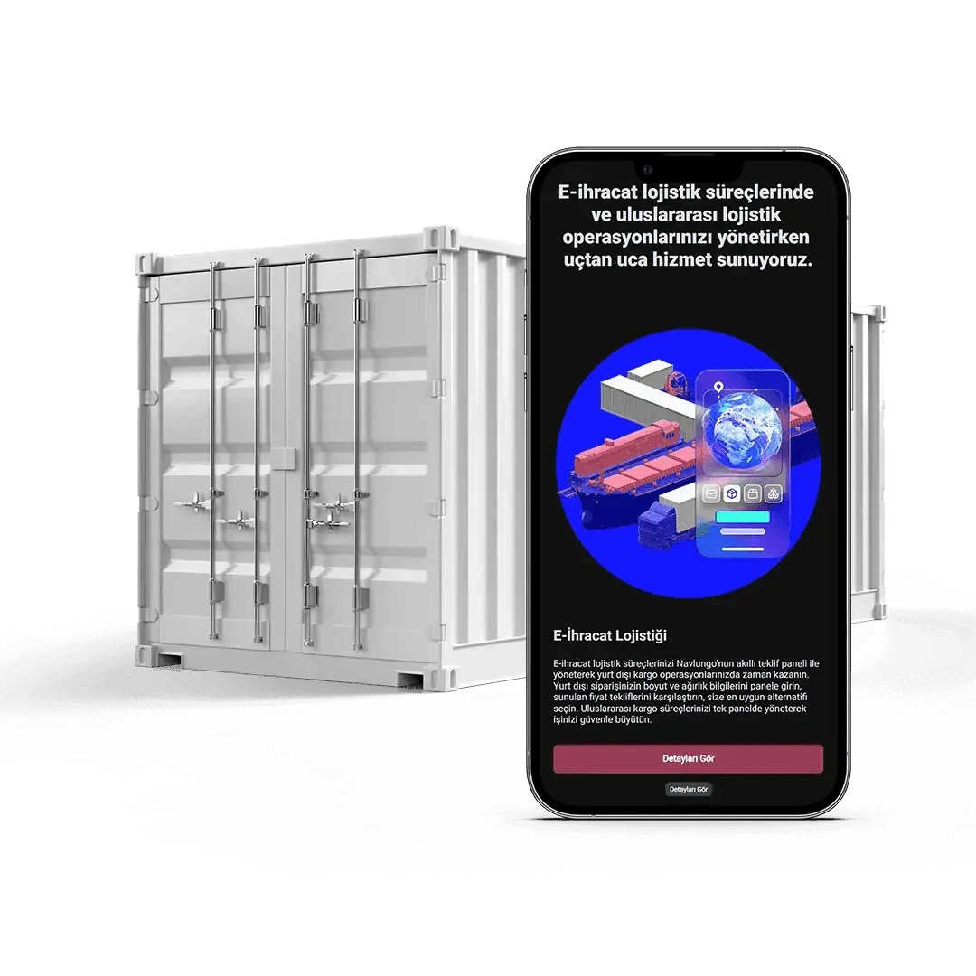 Navlungo’nun uluslararası konteyner taşıma hizmeti, süreci sadeleştirir ve sizin için rahatlık sağlar. İnovatif lojistik platformumuz, canlı takip, tam görünürlük, rekabetçi maliyetler ve kargonuzun dünyanın dört bir yanına zamanında ulaştırılmasını garanti eder. Navlungo'nun hizmetleri sayesinde konteynerlerinizin güvende olduğunu bilin.